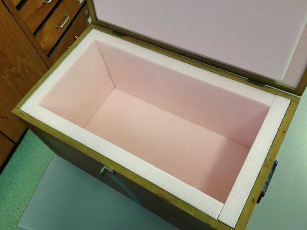 Ok, sencilla agradable paso esto, acaba de obtener la espuma que se ha reducido a tamaño y pégalo en la caja. Utilicé una pistola de pegamento caliente para esta parte, principalmente porque era fácilmente acessable, pero también está el hecho de que muchos solvet basado en colas derretirían el poliestireno y PVA no se adhieren a la superficie no pourus de la espuma.