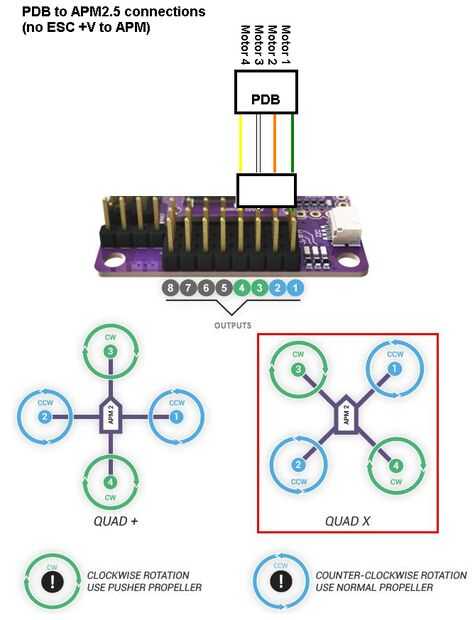 Aquí es un diagrama de conexión utilizando el PDB de 3 DR, APM2.5 y un receptor RC. Si no está familiarizado con los tipos de cableado y conexión, podría pedir ayuda en una tienda de hobby local (LHS), un experimentado aviador/constructor RC, o publicando una pregunta en uno de los foros de discusión en la página web DIY Drones. Personas en esta afición suelen estar encantadas de atenderles.