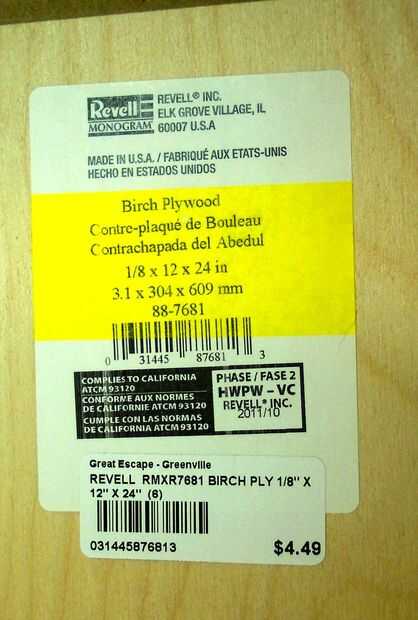 1/8 modelo madera contrachapada del abedul - para el cuerpo placas, pila, tren de aterrizaje montaje