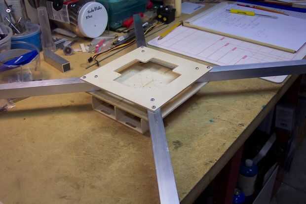 Ahora montar Plate1 en cuatro brazos con ocho tornillos. Debe tener algo que se parece a la imagen en este paso.