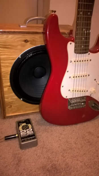 En un capricho compré un usado calibre 22 de Electroharmonx — un aseado amplificador tamaño pedal poco que pone hacia fuera de 22W. (Lamentablemente este pedal ya no está en producción, pero es gran hermano que es la Magnum 44) Llegó, y me di cuenta que no tengo un armario para correr a través. Después de considerar comprar un gabinete y un altavoz, decidí VI hasta 1/2" grado bajo planchas de madera y construir mi propio. Mi pedal especifica 8ohms, así lo seleccione yo 10" Celestian potencia 30W y 8 ohms. El proyecto fue terminado en un sábado y un par de minutos después del trabajo para el acabado. Está sosteniendo gran, muy sólido, no confunde y "abren" sonido. El costo total fue de aproximadamente $40--incluyendo un nuevo altavoz Celestian. Muchas partes fueron salvadas de mi suministro de piezas. Buen cable pesado fue utilizado, junto con izquierda sobre madera contrachapada de 1/2". Fue un divertido proyecto y muy satisfactoria. Una gran introducción a la construcción de equipos de audio.