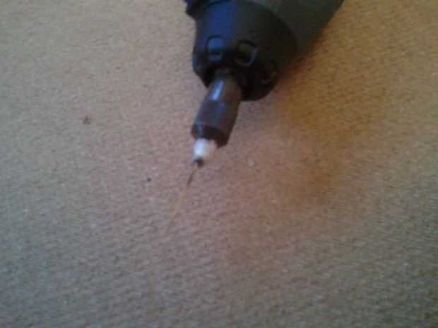 Tuve una muy pequeña taladradora usé una aguja. (es bastante complicado como os adjunto con papel húmedo alrededor de la aguja dentro de la dremel).