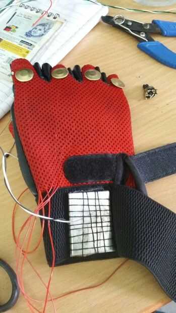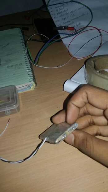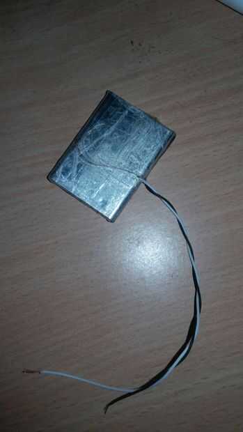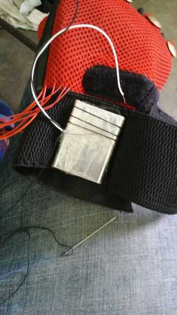 La batería de plomo que es pri-cabido en la raqueta no necesitamos como su demasiado grande, así que utiliza una batería de iones de litio de un teléfono celular, arrancó su cubierta y protección de circuito y había conectado a un cable positivo y negativo. Esta batería está compacto y duradero. Primero utiliza el pegamento adhesivo para colocar la batería en la correa de muñeca luego había cosido allí.