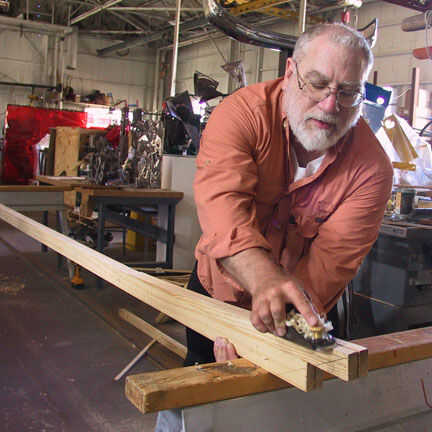 Usar un afeitado de plano o radios de mano para moldear el borde superior de las canalizaciones verticales a una forma ligeramente cóncava para feria en muy bien con la parte superior de la borda.
