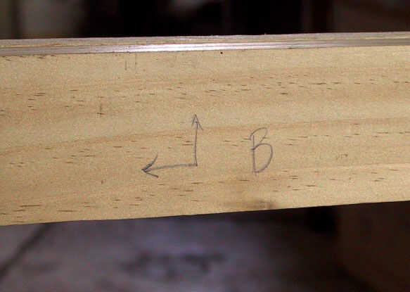 Marque la proa y popa con flechas así que usted puede hacer un seguimiento que es ascendente y que está frente. Usted será marcado cubierta viga posiciones sobre el borde superior de los tableros y costilla mortaja en el borde inferior de los tableros.