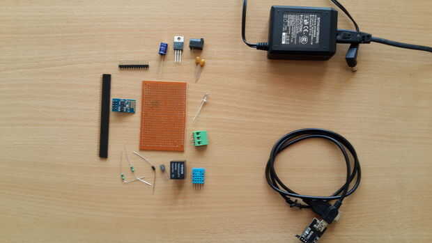 El módulo ESP8266, el sensor DHT11/22 y el cable USB a TTL pueden ser ordenado de ebay.com y los tres juntos no deberían costar más de $9,00. Y el resto de los componentes se puede comprar en cualquier tienda de electrónica por un par de dólares.