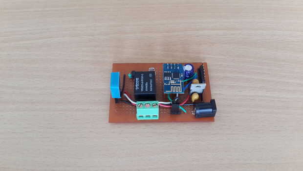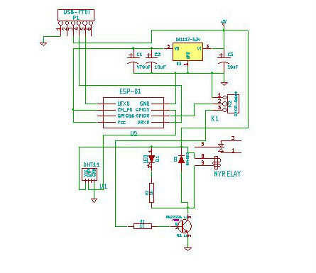 La junta puede ser alimentada ya sea por solo el cable USB o a través de una fuente de CC de 5v conectado a la toma de corriente en la parte superior. Un LDO LM1117-3.3 se utiliza para obtener los 3.3v necesarios para el módulo ESP8266. Un sensor DHT11 es conectado al pin GPIO2 de ESP8266.