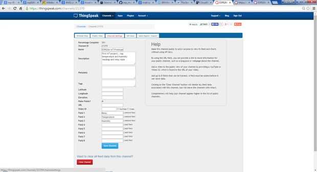 - Thingspeak.com: Una cuenta necesita ser creado en Thingspeak.com. Además, también hay que crear un canal con estos tres canales y sus detalles en user_main.c: