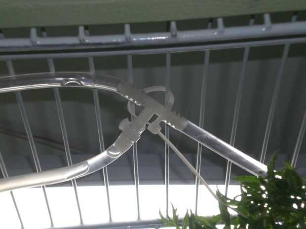 Boquillas de nebulización: ¿Sabes qué? Suena loco, pero no quiero instalar esto permanentemente aún. Mida cuánto tubo te tendrá que llegar desde el programador hasta el final de la gama libre y luego añadir cinco pies. Esa longitud del corte y cuelgue al azar a través de la jaula de iluminación...