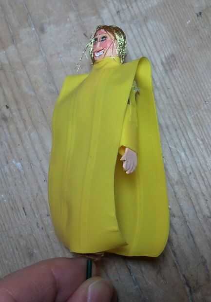 Los brazos han sido pegados en con el sellador de tiempo todos.  Es muy fuerte y totalmente impermeable y no se agrietará.  Y aquí está la primera capa de la vestimenta.  Estoy mirando trajes históricos de los pescadores, que por supuesto es muy simple, se asemejan al atuendo clerical en la que Ángeles se retratan a menudo (hadas de la Navidad, como el pedante siempre disfrutarán de diciendo, son técnicamente Ángeles...  Simplemente ignorarlos, iré a casa pronto).  Es la "hoja" hecha previamente, plegado en mitad, con una pequeña ranura funcionando durante mucho tiempo el pliegue.  Poco a poco alargue la raja hasta que solo me permite bajar sobre su cabeza.