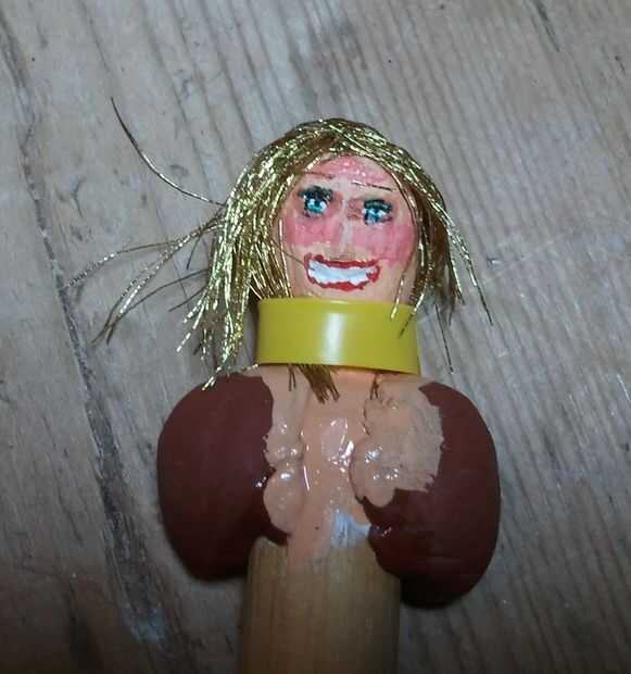 Aquí está el collar.  Una sola pieza de la cinta, dobla por la mitad a lo largo de su longitud por lo que se pega a sí mismo.  Otro pedazo cortado a la mitad de su anchura generalmente se utiliza para fijarla.  Tenga cuidado de no atrapar su cabello, las hadas no me gusta - razón por la cual ella es haciendo muecas un poco en este cierre para arriba.   (Y las cejas de hilo de oro.)  Qué belleza es!