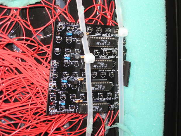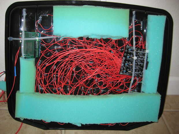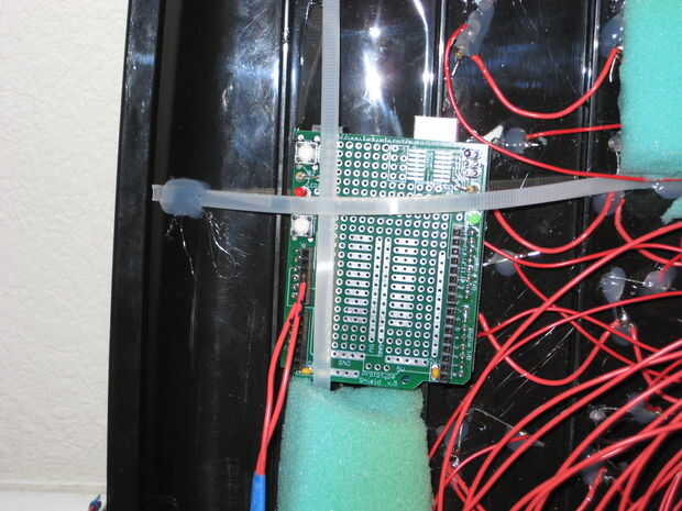 Ahora, para realmente completar la parte de la exhibición del traje, necesitaba escribir algo de código para el Arduino aceptar comandos vía USB de la computadora portátil y luego en coche el tablero de conductor del LED en consecuencia. Mi plan era no para almacenar patrones de cualquier imagen en el Arduino, pero más bien aceptar imágenes de la computadora portátil y encenderán los LEDs basados en eso. El código de ejemplo que Pablo ofrece en su sitio de una gran manera para poner a prueba para asegurarse de que todo el cableado se instaló correctamente y como base para mi propio código. Por suerte para mí, cuando su código de muestra en mi configuración, trabajó la primera vez.