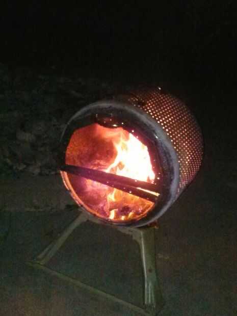 Había visto y oído hablar de hacer un hoyo de fuego en un tambor de lavadora. Día de bien suerte! Murió la lavadora!