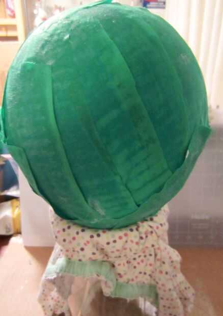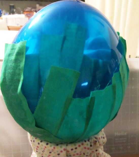 5. permita que el balón se seque al menos 24 horas después de cada capa de cubierto de tela. Mi error fue cubrió todas las capas de verdes al mismo tiempo y desde el interior no podría secar completamente hasta que cortado, mi huevo salió un poco grumosa.