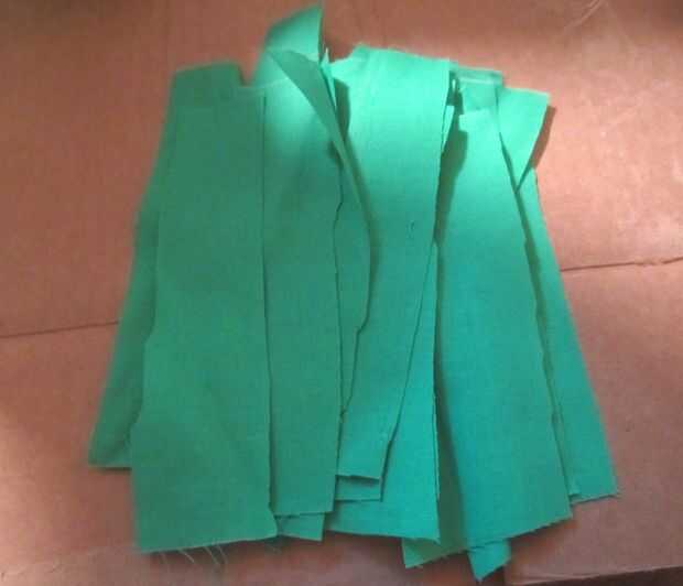 3. cortar a la tela verde en 1.5-2 pulgadas de ancho por 5 ó 6 pulgadas tiras largas.