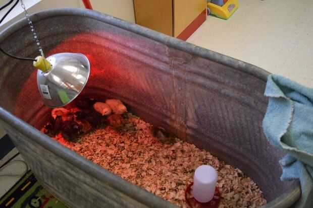 Después de que la piel es sobre todo seco hasta le pones en el recipiente de la criadora. Con la lámpara de calefacción, alimentos y agua.