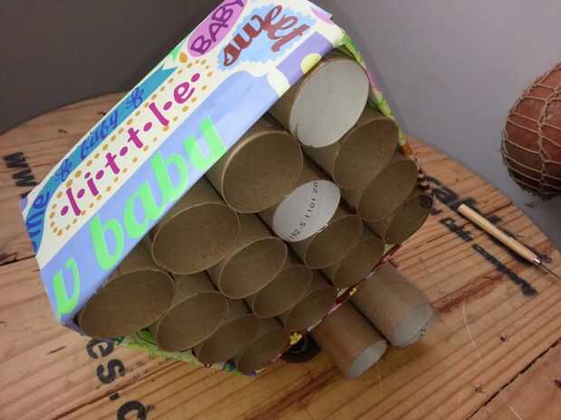 Pegamento el papel higiénico rollos dentro de la caja hasta que termines ;)