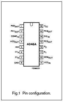 El sensor Hall es cortesía de una unidad de disco mientras que el amplificador operacional proviene de una de mis cajas de piezas de repuesto. Podría ser reemplazado por casi cualquier amplificador operacional adecuado para la fuente sola. El VCO es parte de un chip 74HC4046. Este es un chip PLL, un componente utilizado para generar frecuencias con referencia una referencia estable y precisa, normalmente un cristal de cuarzo. Justo necesitaba el oscilador que es suficiente para los fines.