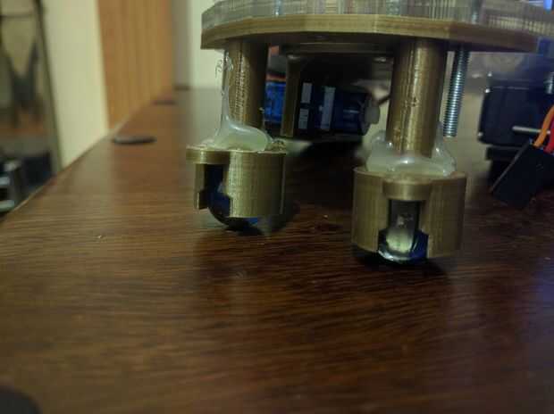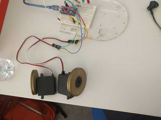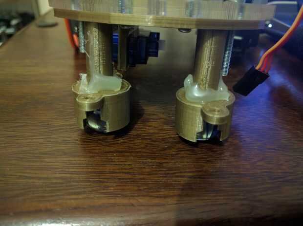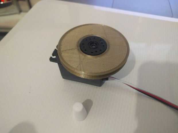 3. cuando se haya secado el pegamento Fije la rueda a servo y compruebe si gira sin problemas. (no pegar todavía).