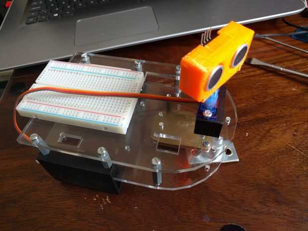 -Conecte el servo para el cuello del sensor ultrasónico como se indica en el esquema.