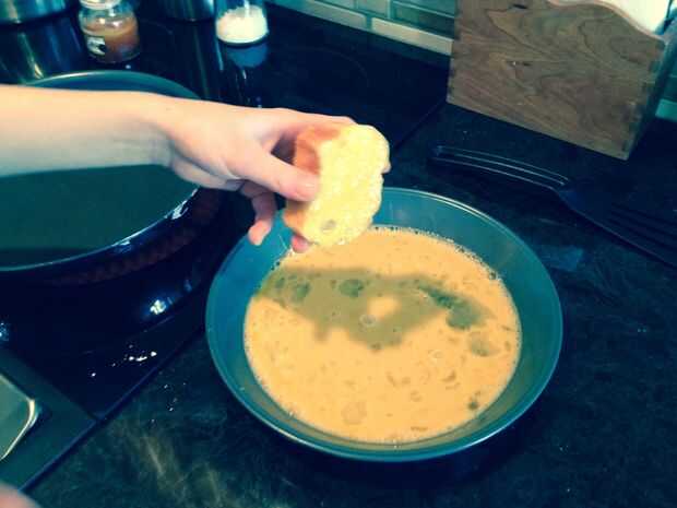 Mojar pan en el huevo y poner en bandeja.