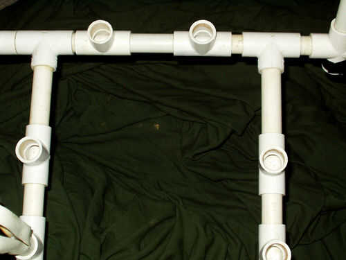 La base para el montaje de los objetos encontrados se hace del tubo de PVC y accesorios de tubería estándar. Una vez que los objetos están organizados, yo uso cemento de PVC para unir las conexiones en la base para que la base no se deshagan bajo uso pesado. No cemento tubos del objeto encontrado conectar unidades en las base portafocos. De esa manera puedo eliminarlos más adelante para juguetear o transporte.
