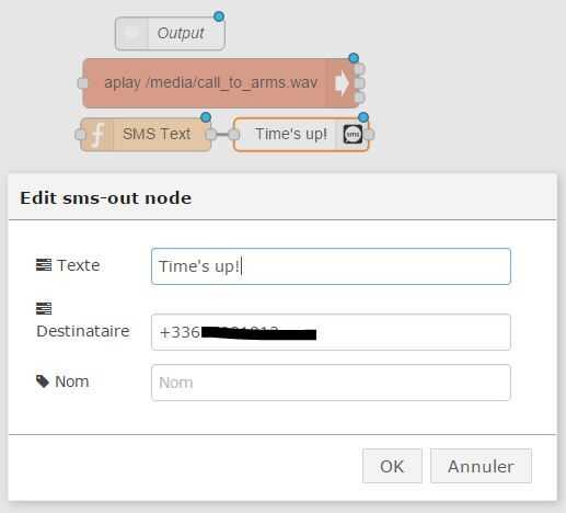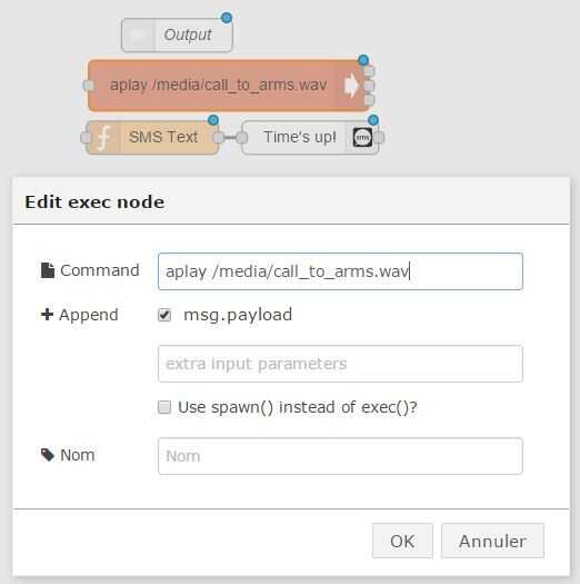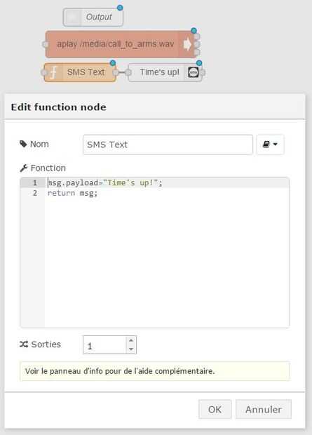 Cuando el tiempo vino a 0 minutos y 0 segundos, es "tiempo" para poner en marcha una acción. En este ejemplo tocamos un sonido, almacenado en la memoria de la frambuesa. Pero podría ser lo que quieras, todo lo que necesites! Podría enviar un SMS, decir algo a través de la vocalizacion, envíe un correo...