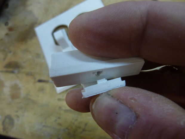 Una vez tengas las piezas, deslice los extremos de las manijas de las diapositivas a través de las ranuras de la placa y rotar a su posición, ajuste a las guías en los carriles. Debe mover suavemente con ningún bamboleo. Si no, presentar las piezas para que se deslicen libremente.