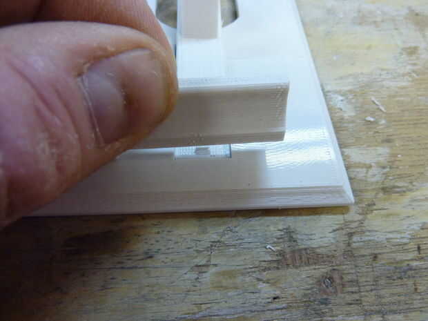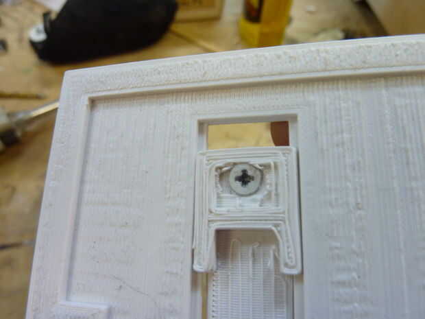 La placa frontal no aparece para mantener la superficie expuesta como brillante como sea posible y por eso, la cubeta poco profunda para el tornillo de fijación es compatible y va a ser un poco áspero. Un toque rápido con un taladro lo limpia para arriba muy bien.