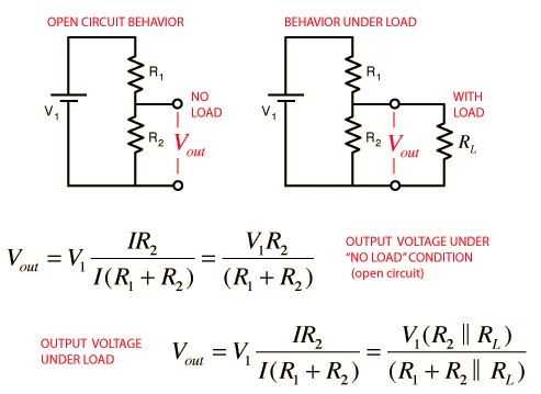 Este arreglo de resistores producirá un voltaje en la salida que depende de las resistencias que se utilizan, este voltaje es determinado por las ecuaciones anteriores. Amp OP tiene una impedancia muy alta, esto significa casi ninguna corriente hace aunque los pines de entrada, esto nos permite diseñar el divisor de voltaje sin tomar en cuenta cualquier carga.