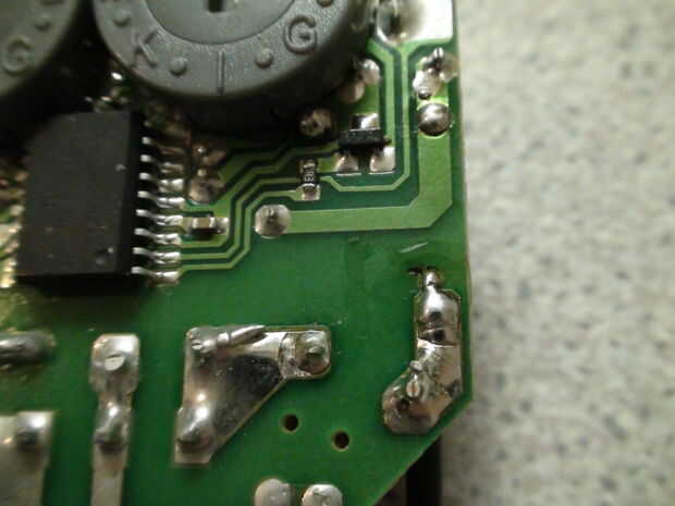 Entonces usted necesita agregar un nuevo agujero en la placa de circuito. Perfore un agujero de 1mm justo por encima de un original para el nuevo pin por defecto en ir.