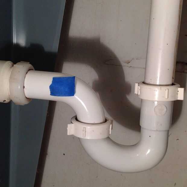 Trampa "P" - Esto es la U en forma de tuberías bajo el fregadero que contiene un poco de agua para evitar que los gases de la alcantarilla que el desagüe una en tu casa. Tomé una foto debajo de mi fregadero, la parte que había pegado la cinta azul en es la parte que utiliza.