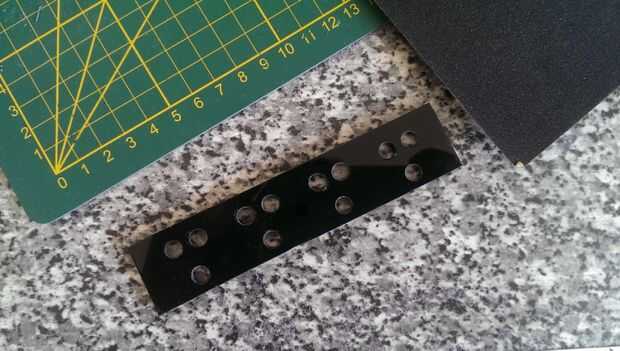 -Dibujar líneas en el panel frontal para indicar la posición del componente. El agujero para el interruptor será en algún lugar en medio de las líneas horizontales de las tomas. (Como veis en la fotografía que he cambiado de puesto los agujeros a un lado un poco, esto hará parecer centrada cuando haya terminado).