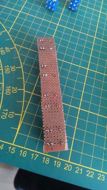 -Tome un pedazo de perfboard y cortarlo al tamaño correcto (Si utilizas un cuchillo de corte, puede cortar un par de veces y luego romper el perfboard). Lo corté de forma así los componentes a montar en el perfboard y hay un pequeño espacio a la izquierda (en el lado izquierdo de los componentes en la imagen) por lo que el interruptor puede apoyarse sobre él.