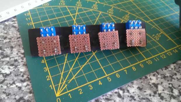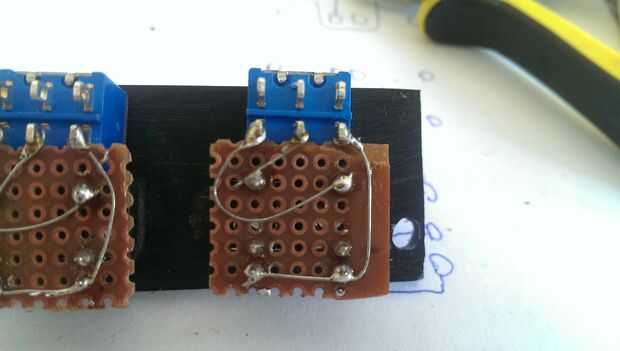 -Coloque el perfboards para que los pines GND de las tomas son hacia el exterior.