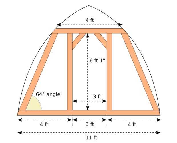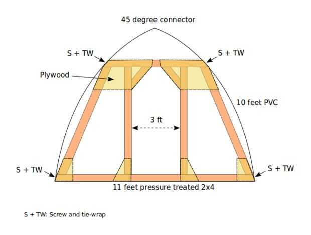 Temporalmente Conecte ambos extremos de la Asamblea a cada lado de 11 pies 2 por 4. Esto le da una idea aproximada de la dimensión del lado de su invernadero.