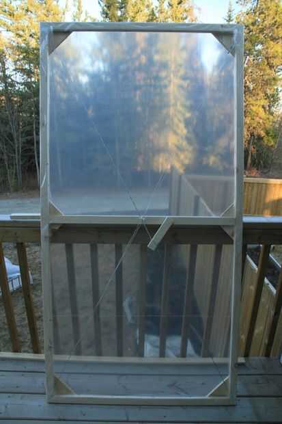 Hacer una puerta a la dimensión de la abertura del invernadero. Si la abertura es 3 pies, que la puerta un poco más grande (3' 3" por ejemplo).