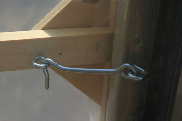 Se ha añadido un cierre del cañón en el exterior y un anzuelo simple en el interior. La puerta se enrosca en el invernadero mediante 2 bisagras.