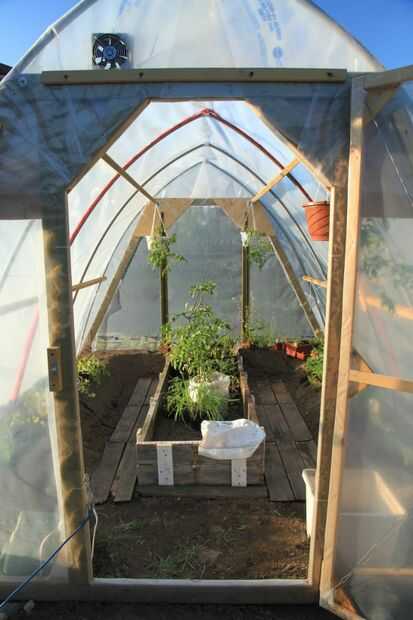 El centro del invernadero es bastante alto y puede albergar plantas de crecimiento rápidas. Los lados son más apropiados para hierbas y vegetales inferiores.