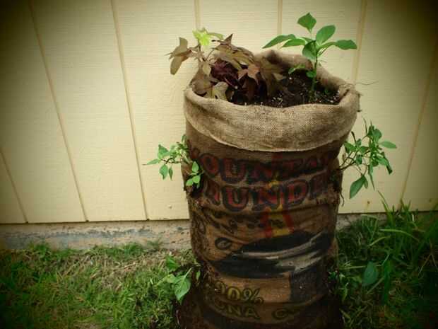 Terminado. Nos decidimos por seis plantas y un saco de este tamaño podría sostener más. Ahora, sólo tienes que regarlo, mantenerlo en un lugar soleado y cruzar los dedos.