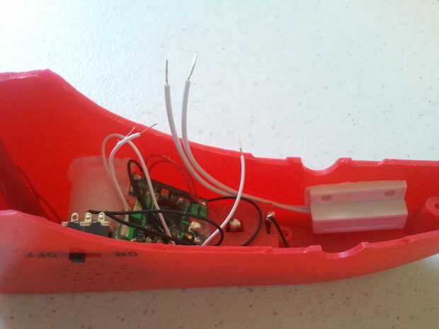 reed switch. Es un genial interruptor que se cierra una vez que pones un imán cerca de él. Cualquier tipo de interruptor ir, realmente no importa, el proceso va a ser el mismo: encontrar el cable que va a la parte del juguete que desea cambiar, corte el cable de la soldadura en el interruptor y listo!