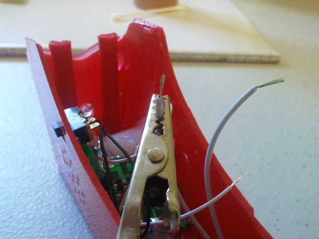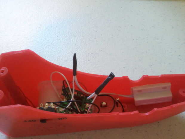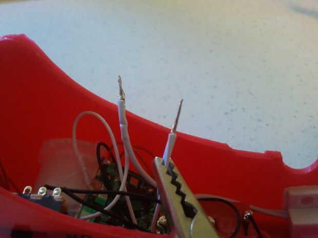 Bastante directo de la parte. No necesitas mucha experiencia de soldadura, pero se necesita un soldador. Asegúrese de que los dos cables del juguete son despojados, y que se eliminan los dos cables del interruptor. Tome un cable de juguete y uno del interruptor, girar juntos, añadir un poco de soldadura y luego hacer lo mismo para los otros dos cables. Aquí es la gran cosa, no importa cual cable va con, asegúrese de que tiene el juguete y el interruptor, luego soldarlos juntos. He añadido un poco de tubo termo retráctil para cubrir los extremos. Se puede utilizar cinta aislante, no desea las partes soldadas en contacto con cualquier cosa.