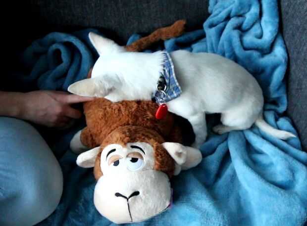 Para mi maestría en la tesis de diseño de interacción en la Universidad de Malmö (Suecia), construí un prototipo juguete del perro del que podría capturar sonido y olor. Empecé con un prototipo de lo-fi, incluyendo un juguete suave en el que podría ocultar un teléfono que reproducir sonidos pregrabados que pueden ser reconocibles para el perro. Otro compartimiento del juguete contenía objetos que tenían un olor reconocible específico. Probando el juguete con los perros que quería explorar sus respuestas lúdicas y el interés general en este tipo de interfaz. Para proporcionar sonidos y olores que los perros podrían encontrar interesante y reconocible, le pedí a un familiar que me enviaran olores y sonidos que conectan con su entorno familiar, un lugar donde mis perros a menudo durante los primeros años de su vida, así como las vacaciones de verano. Ella me envió los objetos tal como una toalla que seguía siendo interior la cama del perro de su propio perro, algunas ramas de la selva al lado de la casa, un perro de juguete que están familiarizados con mis perros y una camiseta usada por un miembro de la familia. Los sonidos incluyen archivos de audio de 20/30 segundos con sonidos de otro perro, el bosque local, sonidos de dentro de la casa y un miembro de la familia hablado.