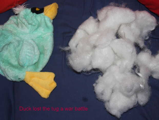 Tomó sobre 5 minutos para nuestros perros completamente desgarrando. Parcialmente porque este juguete tenía un gran sonido y luego lo hicieron tug-a guerra con el juguete y el juguete perdido. Y la tela, una piel de la felpa más fácilmente fue atravesada por dientes caninos.