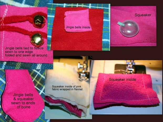Para ambos de estos juguetes, pongo los hacedores de ruido dentro de 2 bolsas de paño grueso y suave (me refiero a ellos como almohadas). Hice capas de tela como una barrera para los dientes de perforación ocurre mientras que la piedra de afilar en el sonido del sibilante y deliberadamente chomp duro en esa zona. También quería que los hacedores de ruido a ser otra capa de modo que si (cuando) el perro mastica por el exterior, podría recuperar el sibilante antes de que consiguieron pinchado o se ingieren.