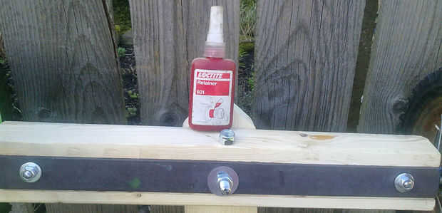 Repita esta sujeción y proceso para el eje de la perforación entonces utilizan un perno de coche largo y dos arandelas grandes para sujetar el eje delantero - para todos los tornillos que usa bloqueo de tuercas, pero también aplicación bloqueo de rosca así.