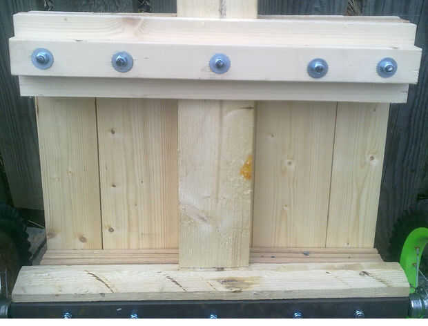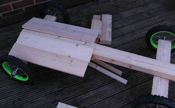 El extra se utiliza para formar un soporte travesaño por la parte delantera del asiento (ver última foto) básicamente usar los separadores de desechos y una longitud de T & G para sandwich sobre la viga de 125 cm. También usé el grano añadido 4 cm como un fortalecedor en el carro.