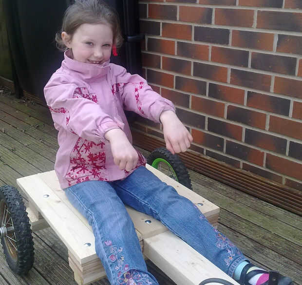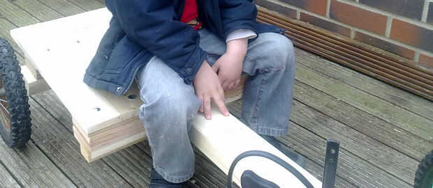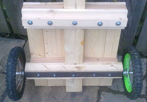 Este iba a ser el final del carro, pero me di cuenta de que los niños en algún momento colocó sus manos aferrarse a los lados con la posibilidad de que quede atrapado en las ruedas, usé los lados de y vieja silla darle el carro algunos lados con estilo y funcionales.