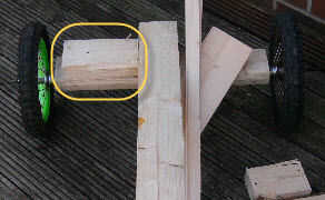 Una mejora adicional fue agregada una vez que comenzaron a utilizar el carretón y descubrí más a menudo que no que iba a ser el motor (ya sea empujar o tirar). Además este fue un ojo de tornillo en la parte posterior en el voladizo de la viga 125 cm. Entonces utilicé y vieja cortina poste equipado con otro ojo como una varilla de empuje, haciéndola fácil de tanto empujar el carro como detenerlo y también aliviar el dolor en mi espalda.