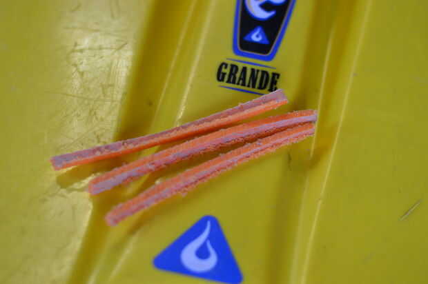 Tiendo a llevar algunas secciones de lápiz tamaño de plástico de barco repuesto en mi bolso de kit (mi soldador también vive allí). Estos fueron cortados de un destrozado casco de un barco 'donado' (vertido) en nuestro campamento el verano pasado.